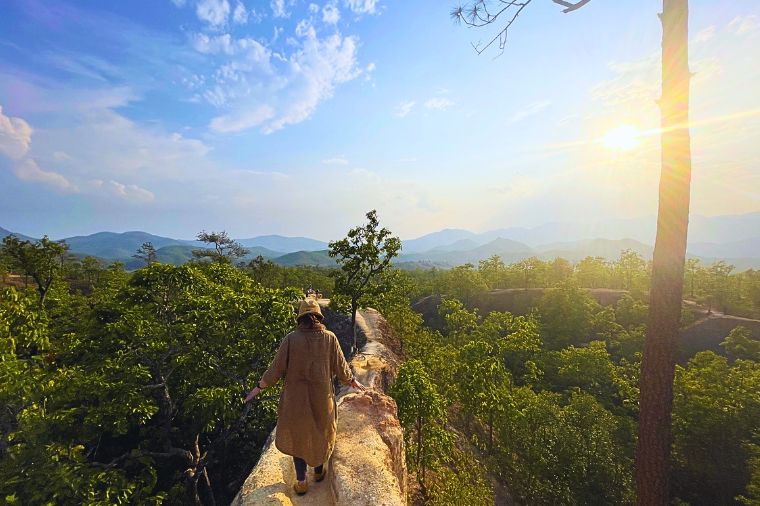 位於泰國西北部的湄豐頌,是一座隱身於群山之間的寧靜小城,距離拜縣約110公里,車程約3小時。沿途山路蜿蜒、風景壯麗,被譽為「泰北最美的山區公路之一」,旅人可一路欣賞層層山巒與雲霧繚繞的景致。這裡融合了泰族、掸族與山地民族的文化色彩,街頭巷尾散發著悠閒而真摯的氣息。湄豐頌都以最樸實的風景,讓旅人重新感受「慢旅行」的美好。