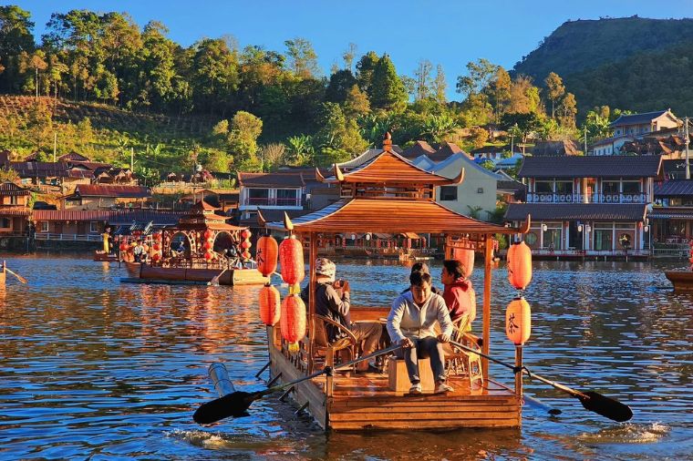 又稱密窩村(Mae Aw),是泰國北部夜豐頌府的一個中式村落。此處的湖光、古色建築與文化氛圍,使遊湖與拍照體驗充滿趣味與特色,無論是品茗、拍照或悠遊湖上,都能深刻感受到泰北山水與中國風文化交織的魅力,是旅人必訪的泰北秘境之一。愛泰村有個風景宜人面積廣大的麗池水庫,所有的房子都圍繞著水庫而建。搭乘古香古色的木船遊湖是愛泰村絕對不能錯過的遊玩項目,乘船悠然遊湖,感受生活的寧靜與閒適,清新空氣,令人身心愉悅,這裡就是遠離塵囂、享受生活的絕佳之地!