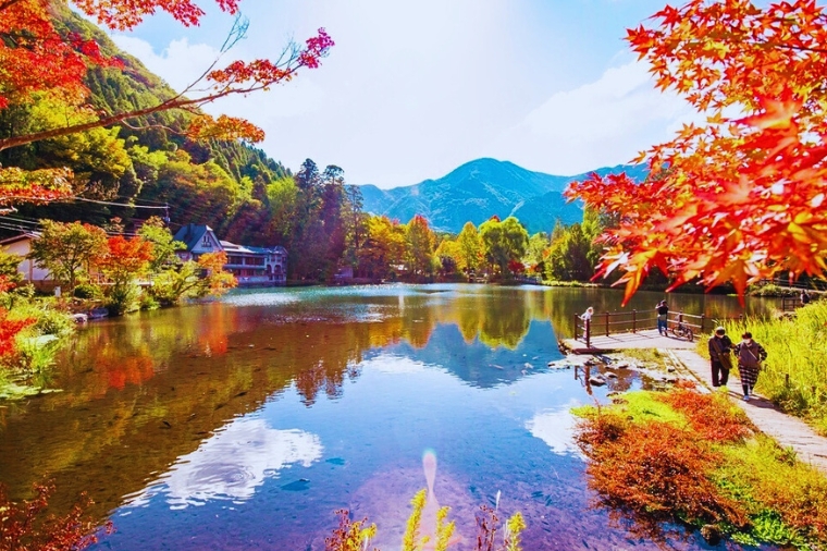 由溫泉匯流而成的金鱗湖,即使是嚴冬季節,湖水也熱氣騰騰,是盆地中晨霧的來源。這一帶充滿情趣的風景,深深地迷戀了與謝野晶子和北原白秋等著名人士,是湯布院最著名的湖泊。
