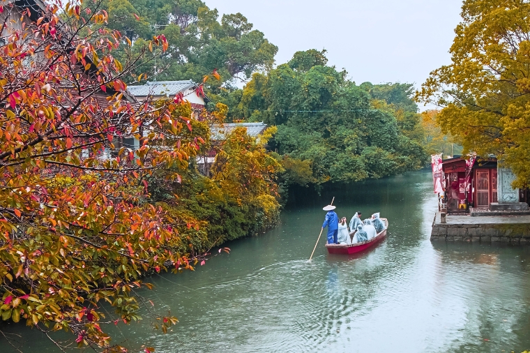 一條細長蜿蜒的小河,沿岸花朵、綠樹及紅瓦古建築,古色古香。著名詩人、童話作家北原白秋說《水鄉柳川就是生我的故鄉,是我吟誦詩賦的泉源》,要體會水鄉之美,唯有船伕擺渡式的泛舟巡訪,才能進入白秋詩篇的世界。 ※備註:若天氣因素停駛或不可抗力因素而無法搭乘時,將退回團體料金每人800日幣、兒童400日幣。