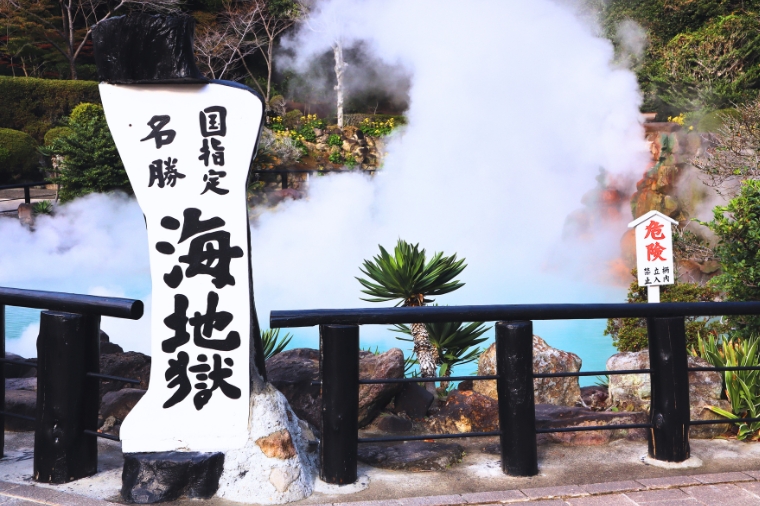 別府聚集了8個有名的地獄,其中海地獄在八大地獄中佔地最大,1200年前因富含硫酸的泉水湧出,呈現海洋一般湛藍的景象而得名。