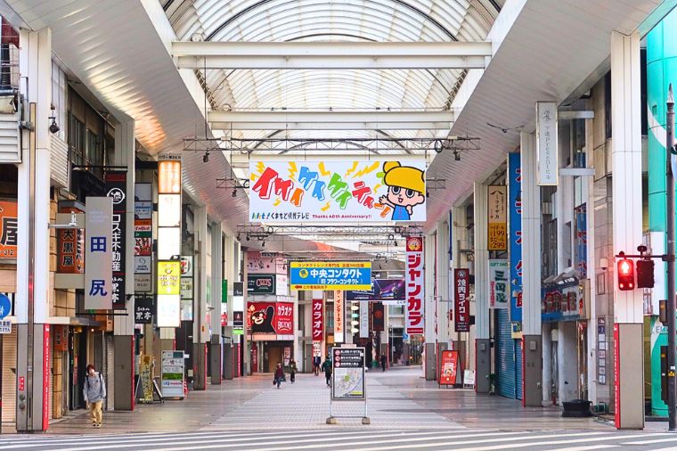 熊本最熱鬧的商店街,下通是熊本最大的拱形商店街,長510公尺、寬15公尺。這個兼具開放與明亮的商店街裡,有許多充滿朝氣的百貨公司、服飾店與餐廳。還有很多營業到深夜的居酒屋與酒吧。