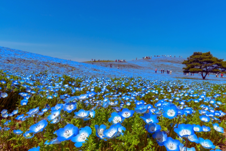 【國營常陸海濱公園.藍色夢幻粉蝶花海】一生一定要造訪一次的絕景勝地,自然是上天賜給人類最美好的贈禮。在日本的春季,除了賞櫻之外,位於日本茨城的日立海濱公園還藏有另一幅令人驚艷的美景。每年4月下~5月上旬,大地上3.5ha約450萬朵的粉蝶花,宛若成千成萬隻美麗的蝴蝶繽紛地飛舞,大地與藍天將染上一片優雅的紫羅蘭色彩,人們來到這裡就像置身夢幻王國,拿起相機來隨意拍下的影像,都能令人驚嘆不已,也為世界帶來更繽紛的想像。造訪時,千萬記得懷抱感恩的心,好好享受大自然創造的魔幻時刻。