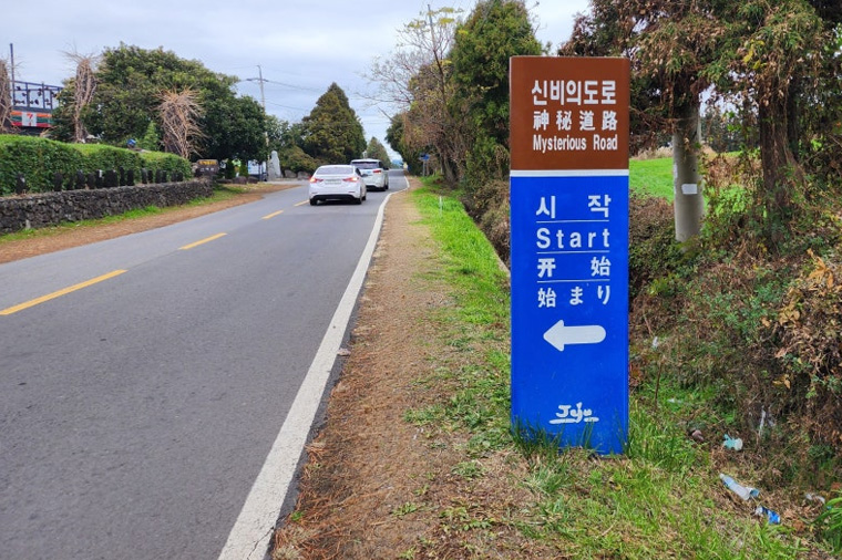【神奇之路】這條路是一段斜坡路,放在路面上的空罐都會沿著上波方向迅速滑動,拉開手閘的汽車也會自動沿上坡行進,其實這是一種錯覺現象。