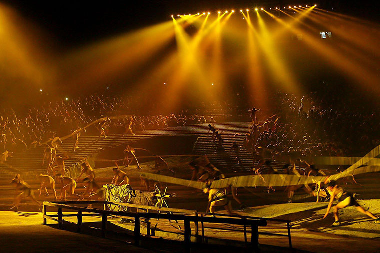 【印象武隆秀】是著名導演張藝謀領銜的北京印象創新藝術發展有限公司共同打造的實景歌會,該演出充分結合武隆喀斯特世界自然遺產資源和地方特色文化,以自然山水為舞臺背景,以群眾生產生活、民風民俗、歷史人文和美麗傳說為藝術素材,演出場地範圍大約上千畝,演出場地設置座位2800餘個,是一個呈“U”形的高山峽谷地帶,四周為陡峭的山峰。 ✿✿✿如遇印象武隆停演,改為都市魔幻秀,不便之處,敬請見諒。✿✿✿