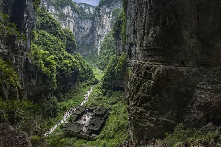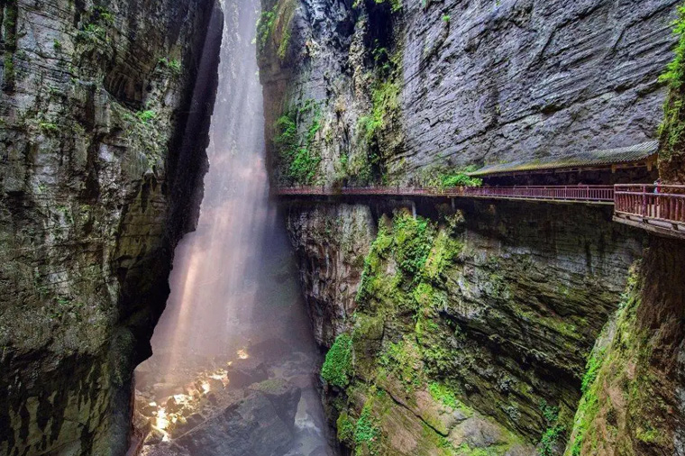 張藝謀影片《滿城盡帶黃金甲》唯一外景地、國家AAAA級景區、世界自然遺產地、世界上最大天生橋群、世界第二大天坑群。天坑並不在天上,而在地下300米處。坐著電梯扶搖之下近100米,眼前的景色是羊水河峽穀的懸崖萬丈和壁立千仞,感覺實在奇妙。