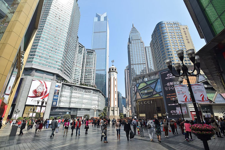 重慶城最繁華的商貿中心地帶,也是新重慶經濟繁榮的象徵。更是市民休閒、購物、娛樂的最佳去處。這一著名購物地帶以解放碑商業步行街為中心,道路兩旁百貨大樓、商店、銀行、影劇院、舞廳、卡拉OK、副食品市場、中外文書店、賓館、飯店等鱗次櫛比,一應俱全。