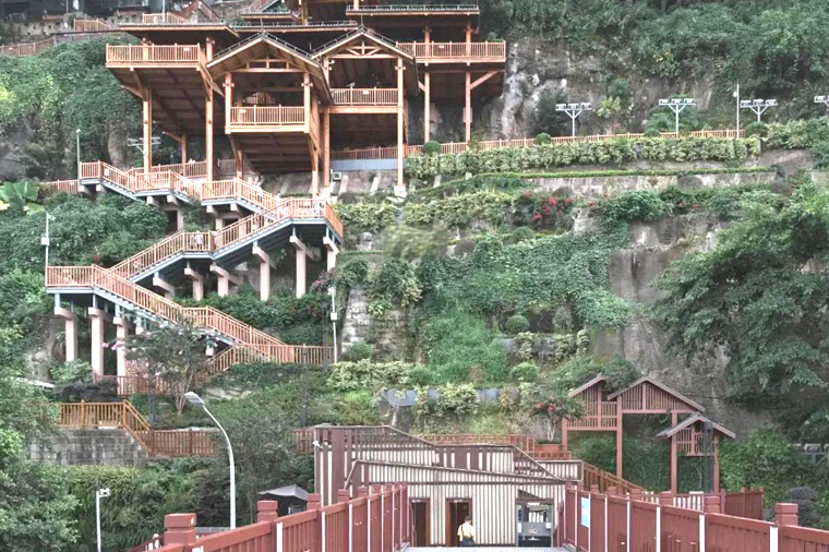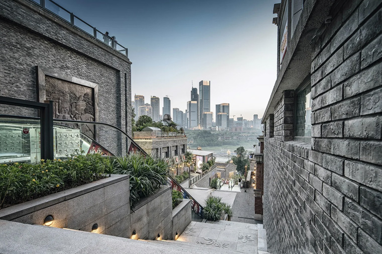 是以崖为墙、固若金汤的悬崖栈道,矗立在嘉陵江边、洪崖洞旁。崖壁步道橫向延伸,在狭窄的半山腰形成视野宽广的观景平台,无论是层次分明的城市风貌,还是碧波荡漾的嘉陵江景都被尽收眼底。