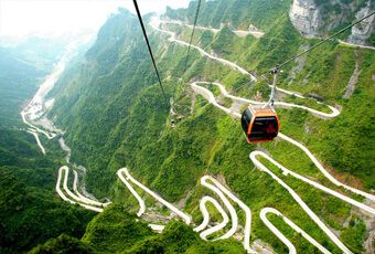 【天門山國家森林公園】天門山一直被當地人民奉為神山、聖山,許多的神奇傳說千古流傳,更被人譽為「湘西第一神山」和「武陵之魂」。高聳的天門洞,是自然鬼斧神工的壯觀大作,走在群峰之上的鬼穀棧道更是絕妙的體驗。天門山有世界最長的高山觀光索道「天門山索道」和被稱為「天下第一公路奇觀」的通天大道,這兩項工程壯觀恢弘、驚險奇絕,令人無比震撼,使得天門山又添冠世奇景。