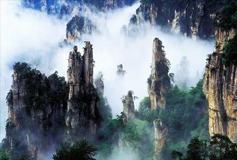 【天子山】為張家界國家風景區三大景觀點之一,天子山景區內千座山峰兀立雲霧繚繞之中,峰巒層疊,若隱若現,千奇百怪,在天子山觀景,視野開闊,氣勢雄偉,層次豐富,尤其以看峰、觀日、賞霧、品雪為絕唱。素有「不到天子山;枉看天下山」之說。
