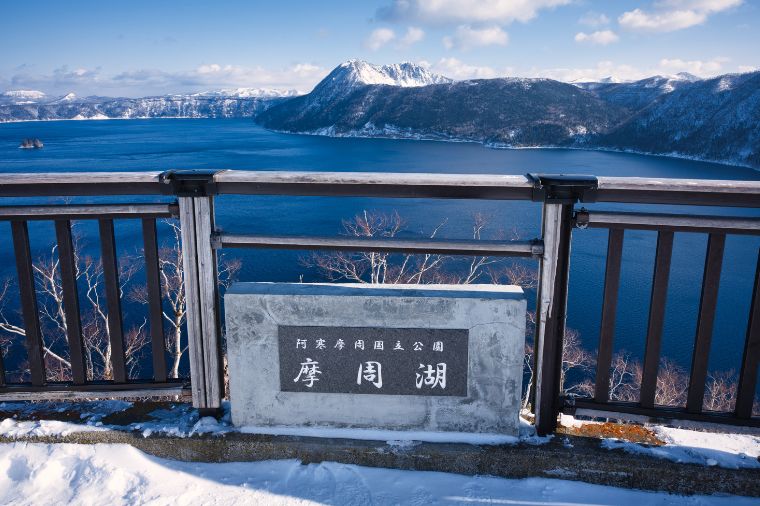 【摩周湖】是摩周岳的火山形成的火山口湖。湖面在海拔350公尺,周長20公里,面積19平方公里,最高的的水深達212公尺,周圍被高150至350公尺的峭壁所圍繞,人類無法靠近。沒有流入或流出的河川,且沒有魚類,透明度最高時接近40公尺,曾經是世界上透明度最高的湖泊。