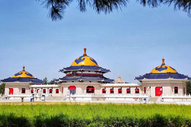 【成吉思汗陵(舊陵)】在鄂爾多斯高原鄂爾多斯市伊金霍洛旗甘德利草原上,有一座巍巍然屹立著的蒙古包式建築宮殿,這就是聞名遐邇一代天驕成吉思汗的陵墓。成吉思汗陵園位於鄂爾多斯高原南部,鄂爾多斯市伊金霍洛旗境內的甘德利敖包之上。1219年和1226年,成吉思汗兩次西征。當他率部路過此地時,深為這裡的秀麗景色所吸引,曾在馬上賦詩加以讚美,並把這裡選作自己的葬身之地。陵園裡叢林茂密,芳草萋萋,鳥語花香。