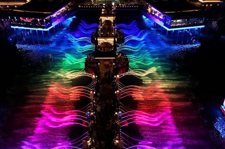 之後壓軸!帶您到海邊,看一場精心策劃的【水舞秀】,把現代科技與河岸景觀完美融合,透過高壓噴頭將水柱噴射至數十米高空,水柱隨著節奏明快的流行音樂或印尼在地樂曲律動,呈現出優雅的弧線與震撼的視覺張力,其最大特色在於「光影交織」:無數繽紛的 LED 燈光投射在水幕上,如夢似幻的立體色彩與動態圖案,也是一種浪漫的體驗。