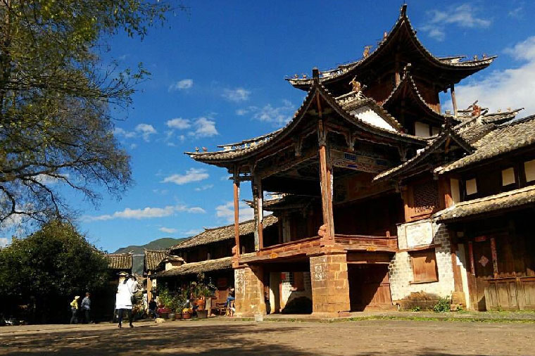 【喜州民居.轉角樓+三道茶】位于大理古城以北18千米處,東臨洱海,西枕蒼山,喜洲是重要的白族聚居的城鎮,這里有著保存最多、最好的白族民居建築群。從布局上看是典型的“三坊一照壁”及“四合五天井”的白族庭院格局。參觀白族民居,並品嚐當地特有的【三道茶歌舞】這是用蒼山雪水特殊調制而成(一苦二甜三回味)。