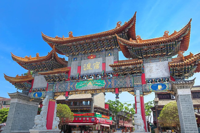 【官渡古鎮】是雲南歷史文化的發源地之一,在南詔大理國時期,官渡古鎮是電池東北區最大的集市。經歷史學家考據,官渡古鎮在四千年前就有人類活動的痕跡,古人喜食滇池中的螺螄,將螺螄殼丟棄於此,所以這裡又稱“渦洞”。昆明現存的許多古建築就建在這一新石器時代貝丘文化遺址上。宋代以前設渡口,漁舟及過往的官船都在這裡停靠,一些官員改坐轎或騎馬入昆明城。成了"官渡"。