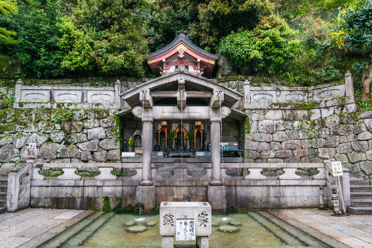 【音羽瀧】順著清水寺奧之院往下,到達音羽瀧。音羽瀧有金色水、延命水之稱,被列為日本十大名水之首。
