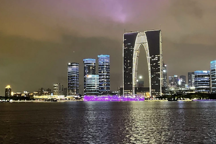 【金雞湖璀璨夜景】中國最大的城市湖泊公園,堪稱二十一世紀蘇州“人間新天堂”的象徵。金雞湖擁有八大景觀:水幕電影·音樂噴泉、水上摩天輪、水墨長堤·李公堤、湖濱大道·圓融雕塑、月光碼頭、桃花島·玲瓏島、春到湖畔、金雞湖大橋·瀑布。
