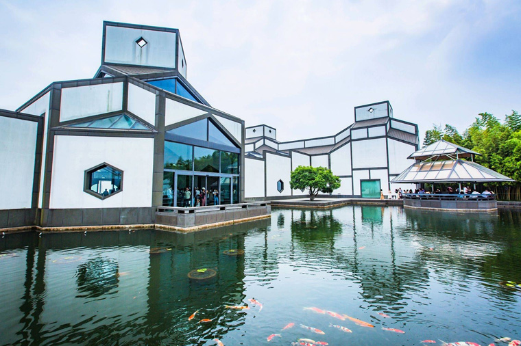 【蘇州博物館】新館建築群在現代幾何造型中體現了錯落有致的江南特色,為一座集現代化館舍建前築、古建築與創新山水園林三位一體的綜合性博物館。