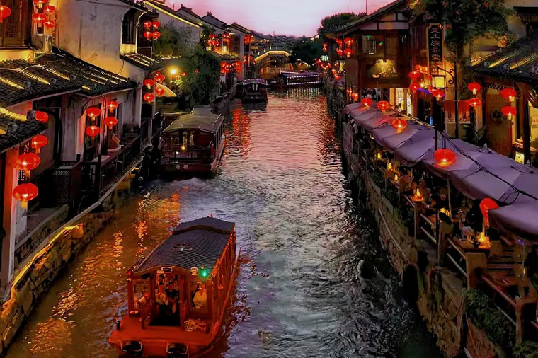 【七裏山塘古街】典型的江南水鄉風貌,家家戶戶前街後河,河上小船來往如梭,街上店鋪林立;體驗東方威尼斯水城的魅力,感受江南水鄉的古樸風情。
