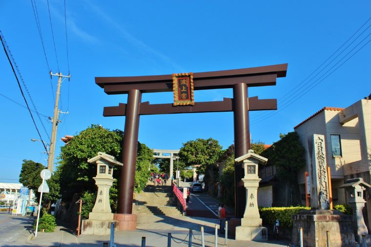 傳統日式古神社的建築,是琉球的八社之一。神社中供奉著國土守護神,每年元旦時,有許多人來此祈願以求終年平安好運,神宮周圍也有販售國人喜愛的平安符。