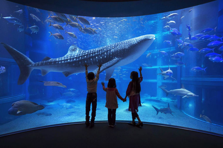 【海遊館】海遊館是位於日本大阪的一個大型水族館,以其環太平洋地區為主題的獨特展覽和巨大的鯨鯊而聞名。 館內展示了約620種、3萬隻海洋生物,並設有大型水槽和互動體驗區,讓遊客可以近距離觀賞各種海洋生物,例如海豹、企鵝、海豚和鯨鯊等等。