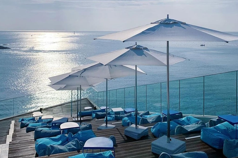 【網美海景咖啡廳】還有比在懶骨頭上看海還要更完美的午後時光嗎!Cafe Coralani最熱門的梯田式沙發坐位區,將蔚藍的大海盡收眼底,日落黃昏時染上暖橘的天空,景色更是迷人,可說是情侶約會聖地。