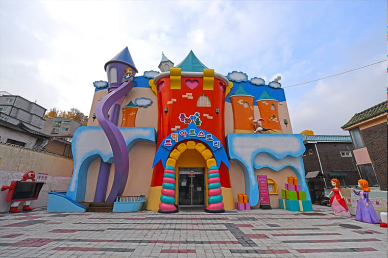 【松月洞彩繪童話村】位於仁川中國城旁,在看到可愛的彩虹愛心拱門時,代表仁川童話村就抵達了,隨即開啟大家的童話世界之旅,整個街道充滿了童話的純真氣息,這裡的房子不像是其他的壁畫村,只是在房子上塗鴉,而是做立體的設計。