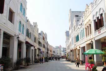 【騎樓老街】兩旁盡是百年歷史的充滿南洋建築風情的騎樓。老街騎樓大多是上世紀初一批批從南洋回來的華僑所建。騎樓外表乍看斑駁古拙,仔細欣賞時發現那些建築上大多布滿優雅細致的雕塑和洋派的裝飾,很有些巴羅克的味道。騎樓樓層都不太高,兩三層的居多,有些還保留著早前的商號,和憑欄、門窗等處的精美雕花。