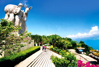 【鹿回頭公園】是中國海南省三亞市的一個公園,是位於市中心區南面三亞河對岸伸入海中的一座小山,整個三亞的制高點,在這裡可以俯瞰北面的三亞市中心區和東面的大東海海灘,並遠眺南面一望無際的南海。山頂上樹立一座12米高的石雕,表現青年獵手和回頭梅花鹿變成美麗少女的故事。