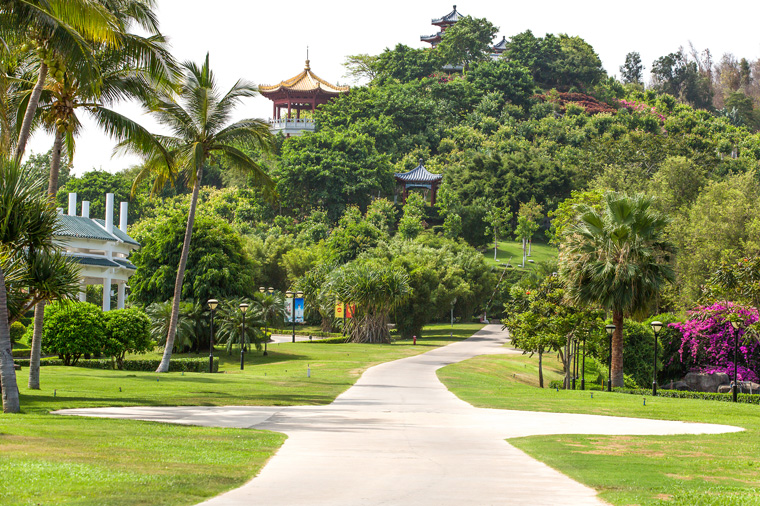 【亞龍灣熱帶天堂森林公園】是電影《非誠勿擾∥》在海南的主要取景地,整個環境呈現熱帶風格,園內有「樹中之王」高山榕、還有另類的籐竹等,都是山中不可錯過的景觀,還能看到時不時的見到蝴蝶在你身邊撲閃而來,置身海天之間,聽蟲唱鳥鳴,極盡野趣。公園分東園和西園,整個公園是步行加車行結合的,景區門票已經包括了遊覽車的費用在內。一般在西園入園,門口就有遊覽車的候車點,然後乘車至熱帶天堂站,這裡有森林公園的主峰紅霞嶺,步行參觀大佛石(它是一組巨石,外形酷似彌勒大佛)、龍雕廣場、滄海樓等景觀後乘車離園。