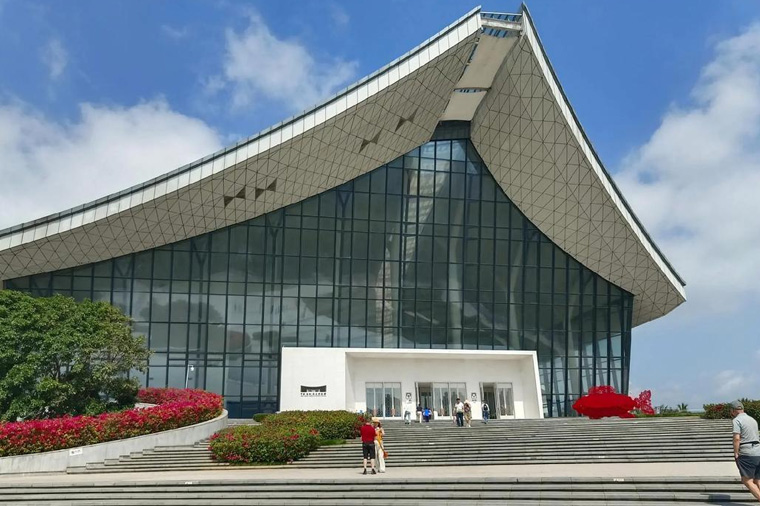 南海博物館】是位於中華人民共和國海南省瓊海市潭門鎮的一座博物館,主要展示南海及海上絲路歷史文化與自然資源等展覽。南海博物館占地面積150畝,建築面積70,593平方米。