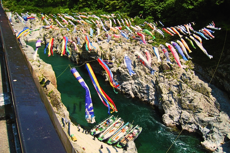 【大步危溪谷遊船】在搭乘遊船的 30 分鐘航程中,可以欣賞德島大步危峽谷的壯麗風光。上船之後可以脫掉鞋子,悠閒地坐在榻榻米上順流而下,有充分的時間可以欣賞碧綠的湖水及兩岸聳立的岩壁。由大步危峽出發,順流而下可進一步體驗山谷之美,沿途溪谷岩壁交錯,可見識到德島縣天然紀念物~蝙蝠岩、獅子岩等特殊奇景。也被稱為《日本三大祕境》之一。