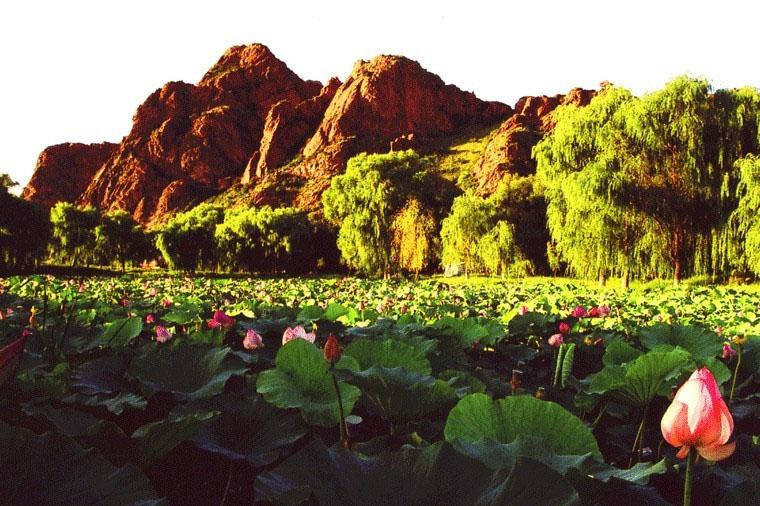 【伊雷木特湖】(俗稱海子口),蒙古語意為“旋渦”,是卡拉先格爾地震斷裂帶上形成的斷陷窪地,被譽為“藍色的河灣”。湖水澄清碧藍,藍的勾人魂魄,似一匹華麗的錦緞徐徐鋪展,絲般光滑,一塵不染,偶爾幾簇大塊的雲朵淺灑,極象錦緞上刺繡的白菏。