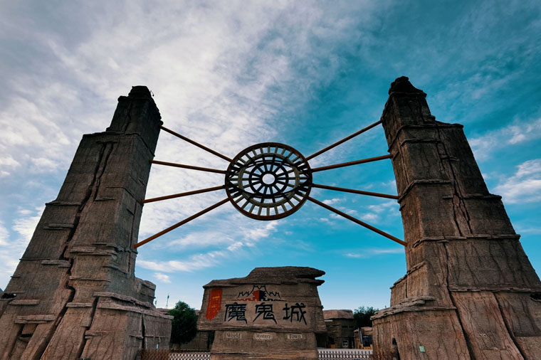 【烏爾禾魔鬼城】。烏爾禾魔鬼城又稱烏爾禾風城,在準葛爾盆地西部,位於克拉瑪依市東北一百二十公里的烏爾盒礦區,為座方圓數十公里的"古城"。有罕見的風蝕地貌,以怪異得名,是哈薩克與蒙古人眼中的鬼城。在遠古時代,那裡曾經是萬頃碧波的巨大淡水湖,後來由於造山運動,變為陸地,原湖區沈積的沙泥經長期的風雨侵蝕,形成凹凸不平、深淺不一的石層,狂風似刀,把它們雕刻成千姿百態,形成外型怪異的形式,一旦狂風驟起,黃沙彌漫,發出慘厲的叫聲,有如鬼哭神嚎,神秘恐怖。