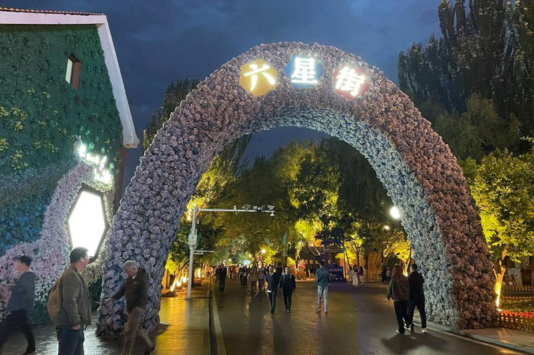 【六星街】是中國塞外江南之城的新疆伊犁州伊寧市的一個古老街區,始建於上世紀30年代中期(1934-1936年),根據當時新疆省政府推行的六大政策(反帝、親蘇、民族平等、和平、建設、清廉)理念,由德國工程師瓦斯里規劃設計。街區平面呈圓形,有六條主幹道從中心向外輻射,把街區分成六個扇形地區,中心為學校、商鋪等公共建築,外圍為居住區,形成一個特色的居住模式。當地人民親切的稱為“小八卦城”。