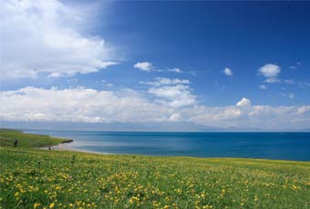 【塞裏木湖】。蒙古語意為「山脊梁山的湖泊」,是新疆海拔最高、面積最大的高山湖。賽裏木湖水深邃湛藍,湖畔雲杉蒼翠,牧草如茵,神奇、秀麗的自然風光深深烙印在你我心中。