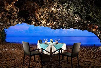 【岩洞下午茶+雙體船帆船+海灘泡沫派對】samabe酒店與其他酒店的不同之處還在於它的海灘邊有很特別的岩洞。酒店在保留了岩洞原始風貌的基礎上,開設了餐廳。在此用餐,有種回歸自然的感覺。