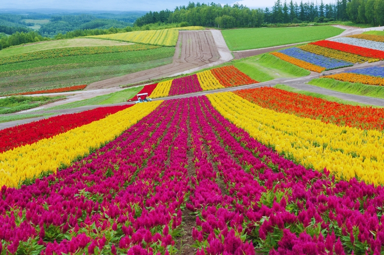 【四季彩之丘】位於視野遼闊、風景絕佳的“丘之町美瑛”,面積達15公頃,非常廣闊,種植著各式各樣的花朵作物,形成有如拼布一般色彩斑斕的夢幻美景,是美瑛最具代表性的象徵。欣賞鮮豔花海的同時,還能眺望遠峰壯闊的十勝岳山脈,景色令人難忘。