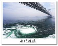 【鳴門大橋】鳴門海峽位於鳴門與淡路島之間,全長1629公尺的斜張橋。瀨戶內海與紀伊水道之海潮於此相遇,由於二者之漲退時間不同,因而產生了世界最大的漩渦-【鳴門漩渦】。在春秋大潮時,漩渦直徑高達20公尺,時速20公里。而鳴門大橋上的「渦之道」散步路更可以從45公尺高的海面上隔著玻璃觀看驚心動魄的海漩渦,享受極佳視覺驚險快感的同時,是否會讓您更加敬畏大自然的神秘力量呢?