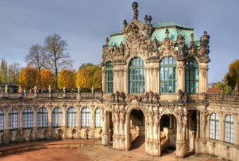 ★茲溫葛皇宮 Zwinger:德勒斯登這座皇宮是德國首屈一指的巴羅克式建築。入口處的大鍾勤,是由邁森瓷器打造,鑲坎在上頭更顯得氣派。
