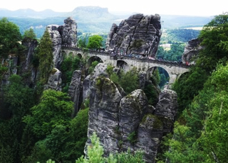 ★巴斯泰Bastei:屬於薩克森瑞士國家公園一部份, 最有名的就是有很多奇岩怪石(Worn cliff),, 奇岩中間還有建一座歷史悠久的古橋 Bastei Bridge和滿是奇岩怪石的石林景觀區,觀景橋樑搭架在岩石群上,遊客可以邊走邊欣賞不同角度風光的美景。