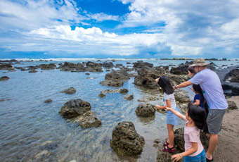 這裡過去被稱為「杉原海水浴場」,有著海上步道,能夠很親近的漫步在海中,不僅可以在最美的沙灘玩沙、戲水,還可以買魚饅頭來餵魚。在富山護魚步道旁的木棧道,也有許多的景觀咖啡廳林立,也可以挑間咖啡廳慵懶坐著看海喝咖啡唷!