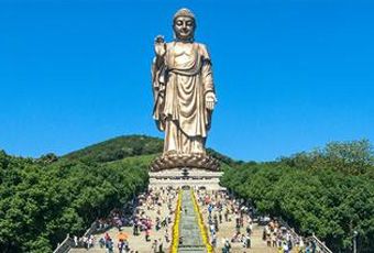 為世界上最高的露天青銅釋迦牟尼立像,坐落於無錫馬山秦履峰西側的小靈山上,該處原為唐宋名?祥禪寺之舊址,九龍灌浴表演每天定時開啟五次,開啟時,周圍蹲踞的九條巨龍將一齊噴出高達三十多米的弧形水柱,當這九股水柱直沖天際轟然交匯沐浴佛身時,廣場四方鼓樂齊鳴,噴泉水體百媚千姿這一神奇的動態景觀正是依據佛經中所記載佛祖出生時的故事建造而成。